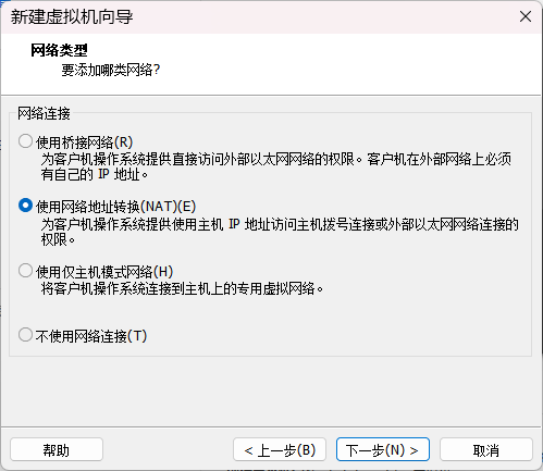 网络类型配置为 NAT 。
